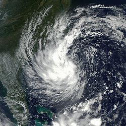 In addition to being the most intense tropical cyclone on record, Tip was the largest cyclone on record, with tropical storm-force winds 2,170 kilometres (1,350 mi) in diameter. The smallest storm on record, Tropical Storm Marco, formed during October 2008, and made landfall in Veracruz. Marco generated tropical storm-force winds only 37 kilometres (23 mi) in diameter.