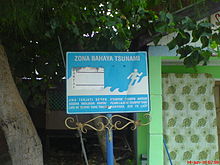 Tsunami warning bilingual sign in Ulee Lheue, Banda Aceh in Acehnese and Indonesian