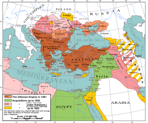 The Ottoman Empire's power and prestige peaked in the 16th and 17th centuries, particularly during the reign of Suleiman the Magnificent. The empire was often at odds with the Holy Roman Empire in its steady advance towards Central Europe through the Balkans and the southern part of the Polish-Lithuanian Commonwealth. At sea, the Ottoman Navy contended with several Holy Leagues (composed primarily of Habsburg Spain, the Republic of Genoa, the Republic of Venice, the Knights of St. John, the Papal States, the Grand Duchy of Tuscany and the Duchy of Savoy) for control of the Mediterranean Sea. In the east, the Ottomans were occasionally at war with Safavid Persia over conflicts stemming from territorial disputes or religious differences between the 16th and 18th centuries.