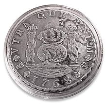 Another popular explanation is that it comes from the Pillars of Hercules on the Spanish Coat of arms on the Spanish dollars that were minted in the New World mints in Mexico City, Potosí, Bolivia, and in Lima, Peru. These Pillars of Hercules on the silver Spanish dollar coins take the form of two vertical bars (||) and a swinging cloth band in the shape of an "S".