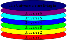 Depiction of a multiverse of seven "bubble" universes, which are separate spacetime continua, each having different physical laws, physical constants, and perhaps even different numbers of dimensions or topologies.