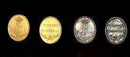 - Golden Cross - Class IV: for officers who commanded their troops with outstanding bravery and valor, and for NCOs and ordinary soldiers, previously awarded the Silver Cross, for acts of outstanding bravery and risk of life on the field of battle.