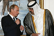 Vladimir Putin with Sheikh Hamad bin Khalifa al-Thani in Doha, Qatar, 2007