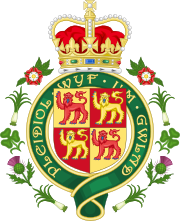 The Prince of Wales' heraldic badge is also sometimes used to symbolise Wales. The badge, known as the Prince of Wales's feathers, consists of three white feathers emerging from a gold coronet. A ribbon below the coronet bears the German motto Ich dien (I serve). Several Welsh representative teams, including the Welsh rugby union, and Welsh regiments in the British Army (the Royal Welsh, for example) use the badge, or a stylised version of it. The Prince of Wales has claimed that only he has the authority to use the symbol.