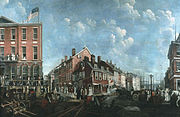 In the first few decades, both residences and businesses occupied the area, but increasingly business predominated. "There are old stories of people's houses being surrounded by the clamor of business and trade and the owners complaining that they can't get anything done," according to a historian named Burrows. The opening of the Erie Canal in the early 19th century meant a huge boom in business for New York City, since it was the only major eastern seaport which had direct access by inland waterways to ports on the Great Lakes. Wall Street became the "money capital of America".