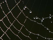 Dew drops adhering to a spider web