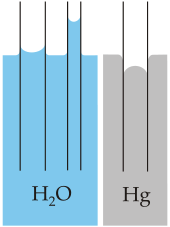 Capillary action of water compared to mercury