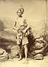 A water-carrier in India, 1882. In many places where running water is not available, water has to be transported by people.