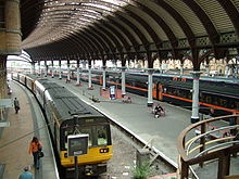 York has been a major railway centre since the first line arrived in 1839 at the beginning of the railway age. For many years the city hosted the headquarters and works of the North Eastern Railway. York railway station is a principal stop on the East Coast Main Line from London to Newcastle and Edinburgh. It takes less than two hours to get to York from London by rail, with at least 25 direct trains each weekday. The station is also served by long distance trains on Cross Country services linking Edinburgh and Newcastle with destinations in south and west England via Birmingham. TransPennine Express provide a frequent service of semi-fast trains linking York to Newcastle, Scarborough, Leeds, Manchester, Manchester Airport, and Liverpool. Local stopping services by Northern Rail connect York to Bridlington, Harrogate, Hull, Leeds, Sheffield and many intermediate points, as well as many other stations across Greater Manchester and Lancashire.