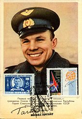 A postcard with an image of Yuri Gagarin